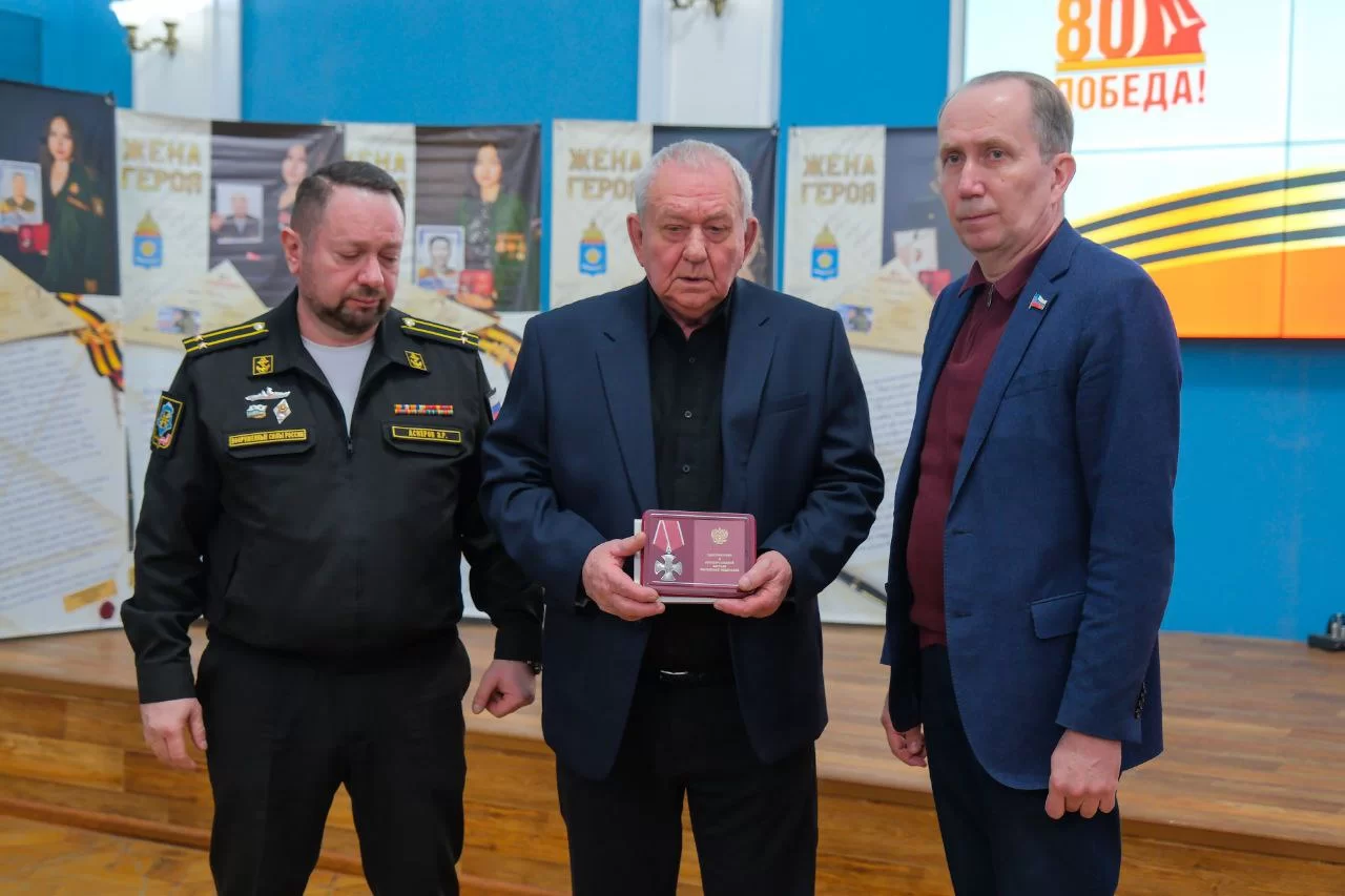В присутствии председателя Общественной палаты Астрахани Александра Даирова и директора музея-заповедника Алексея Булычева Игорь Седов и военный комиссар Астрахани Эльдар Аскеров вручили государственные награды родственникам погибших участников спецоперации.