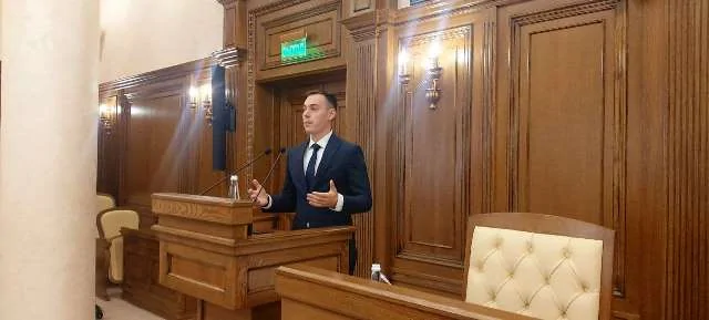 На первом в истории заседании белгородского Молодежного парламента в торжественной обстановке молодым депутатам вручили удостоверения. Заместитель председателя Молодёжного парламента при Государственной Думе РФ Дмитрий Шатунов обсудил рабочие моменты с молодыми людьми:
