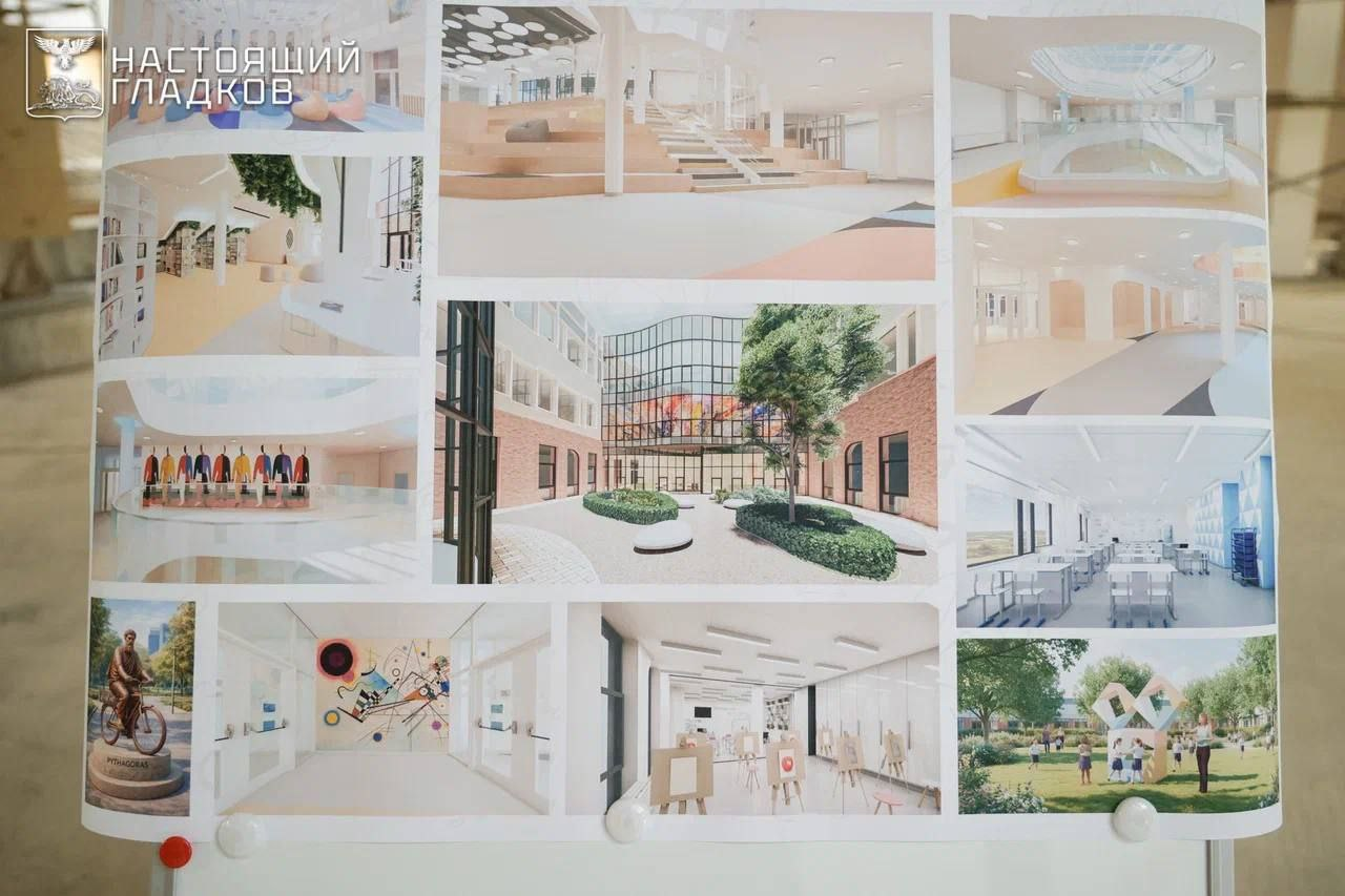 «В школе будут два спортивных и тренажерный залы, кабинет хореографии, два бассейна (6х10 м — для учеников начальных и 10х25 м — для учащихся 5-11-х классов и жителей), а также столовая и пищеблок, мастерские для уроков технологии, библиотека, тир, лаборатории робототехники, 3D-моделирования», - отметил по итогу посещения школы Вячеслав Гладков.