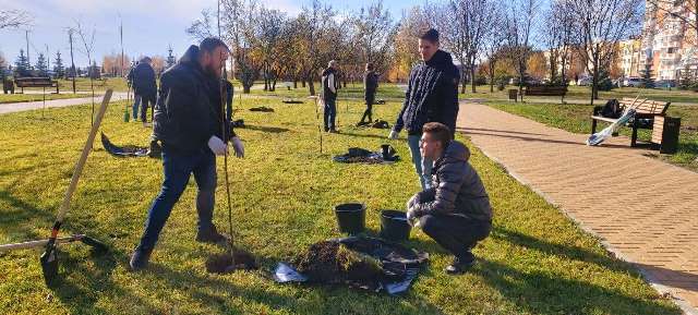 Результат работы стал заметен уже через пару часов. Парк Сретинский пополнился молодыми деревьями – всего было высажено несколько десятков мелколиственных лип, а саму территорию в 3 га очистили от осенних опавших листьев.