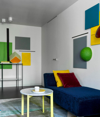 Смельчакам и поклонникам супрематизма подойдет вариант украшения стены абстрактными геометрическими формами. Броский декор перетянет на себя все внимание, в таком интерьере важно не переборщить с деталями.