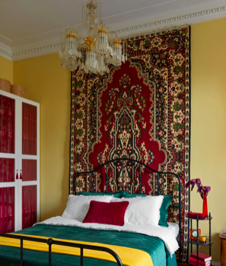 Хорошо знакомый рожденным в странах соцлагеря прием – ковер на стене. Причем «бабушкин» ковер может отлично вписаться в современный интерьер, если его дополнить, но не перегрузить гармонирующими деталями, например, светильником той же эпохи. Также можно использовать ковры с этническими мотивами или принтами.