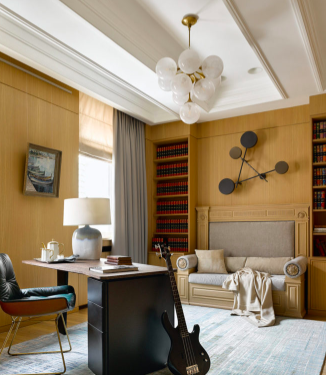Другой популярный прием для украшения пустой стены – изделия геометрической формы, это могут быть панно, светильники или настенные фигуры. При этом они подойдут как к лаконичному современному интерьеру, так и смогут гармонично вписаться в пространства, оформленные в классическом стиле.