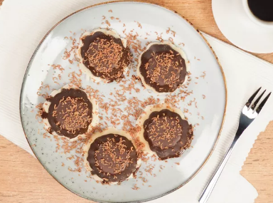 7. Нарежьте суфле на порции. Каждую конфету обмакните в шоколадную глазурь. Затем готовое «птичье молоко» уберите в холодильник на час.