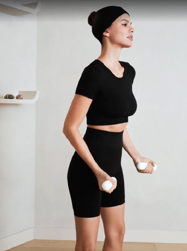 Помимо комфортной и универсальной спортивной формы, мы добавили красивые и эргономичные аксессуары, которые после тренировки благодаря лаконичному дизайну станут элементом декора в домашнем интерьере: минималистичные утяжелители для рук и для ног, гантели с силиконовым покрытием и массажный мяч для разминки и восстановления мышц.