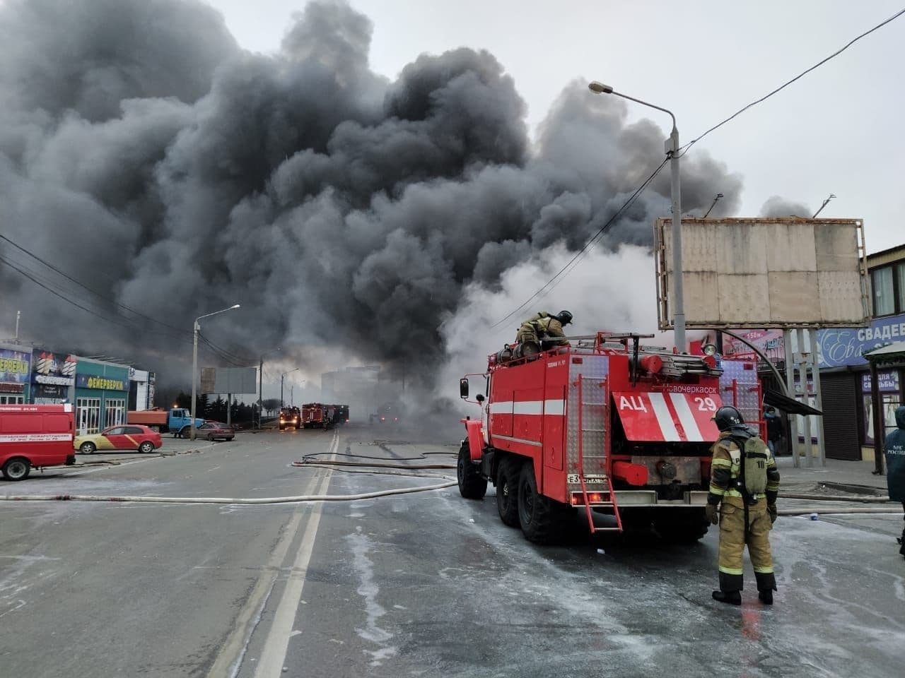 По предварительным данным, пострадавших из-за пожара нет. По данным МЧС, загорелся павильон с пиротехникой. Его тушат 36 человек личного состава и 12 единиц техники.