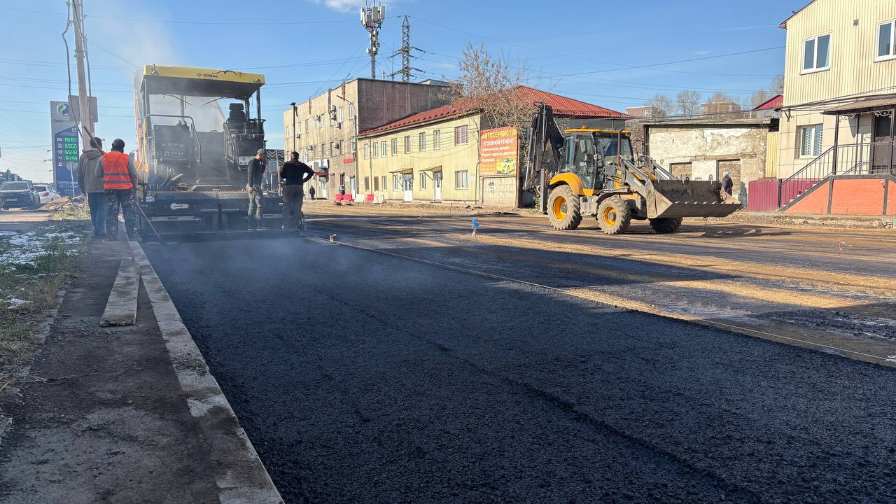 До начала асфальтирования специалисты произвели укладку геотекстиля, выполнили отсыпку щебеночного основания и его уплотнение. Одновременно ведутся работы по установке бордюров и восстановлению тротуаров.