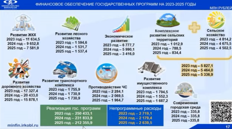 Министр финансов Иркутской области доложила, что на финансирование социальной сферы в 2023 году планируется направить свыше 171 млрд рублей или 68% от общего объема расходов. А к 2025 году доля расходов на соцсферу будет увеличена до 70%.
