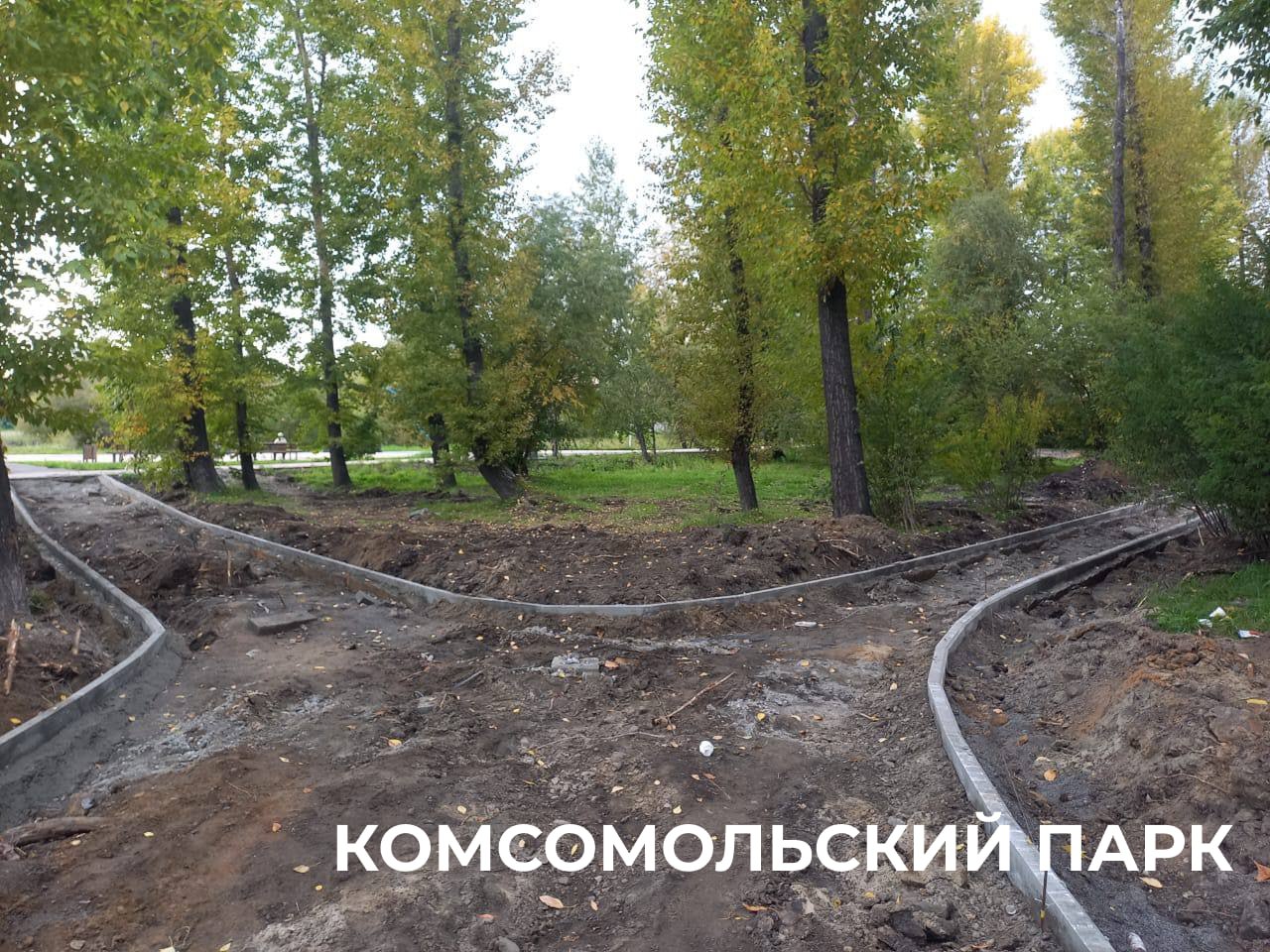 В парке «Комсомольский» продолжается монтаж бордюров и обустройство четырёх входных групп. Подрядчик также изготавливает арматурные каркасы для пандуса.
