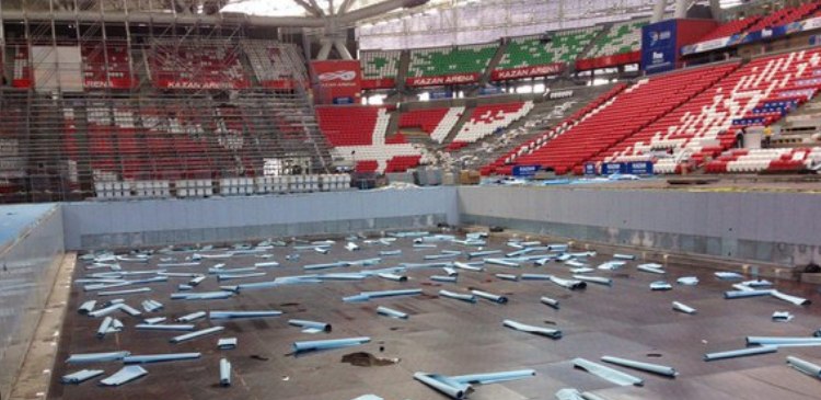На стадионе «Казань Арена» начали разбирать бассейны, которые были установлены для проведения соревнований ЧМ-2015.