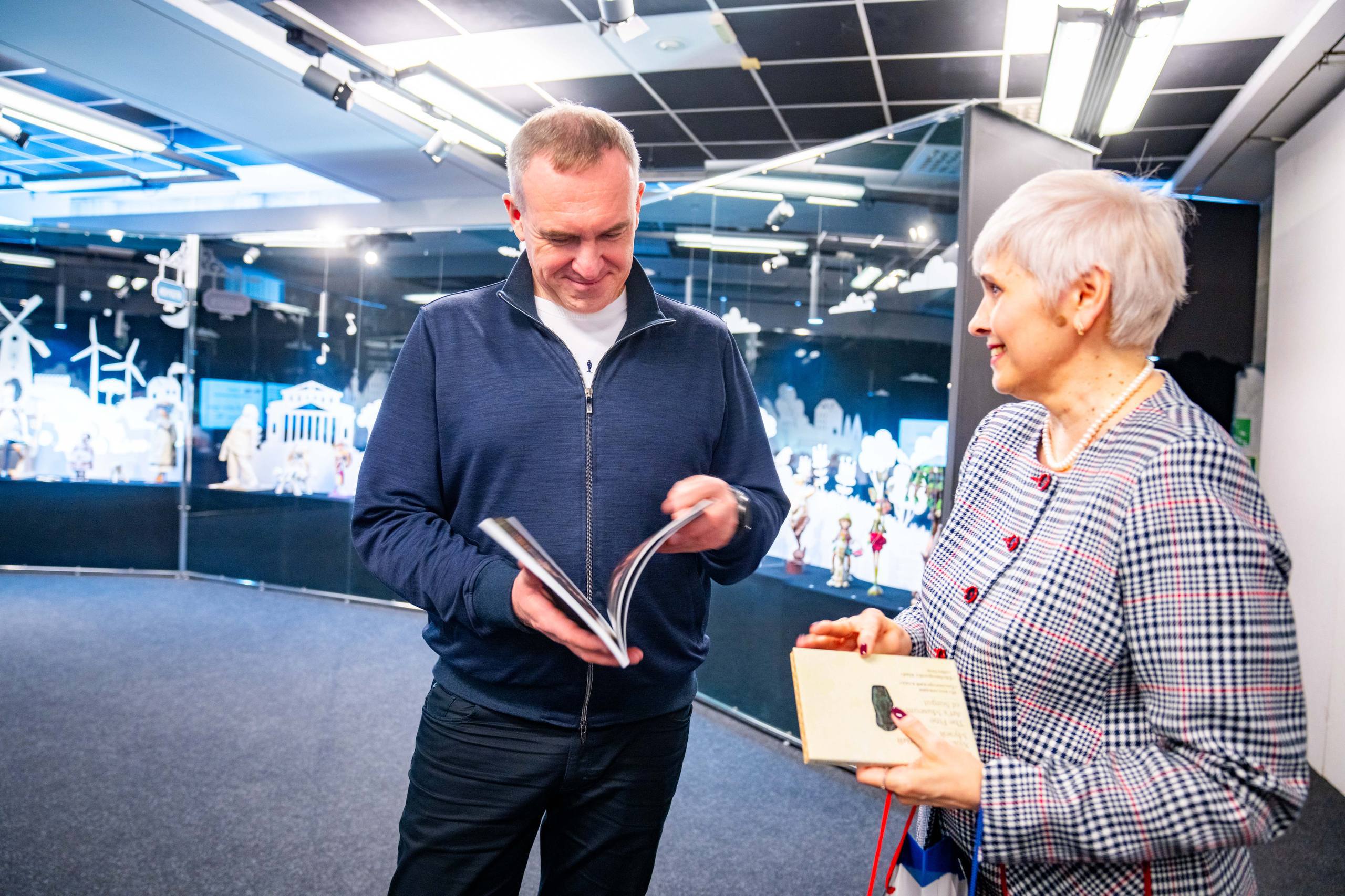 Одной из ключевых точек визита стал Сургутский музейный центр. Здесь глава региона осмотрел несколько экспозиций, включая историческую реконструкцию развития города — от периода «Сургута острожного» до советской эпохи, а также выставку, связанную со спектаклем «Легенда о Гамлете» Сургутского музыкально-драматического театра.