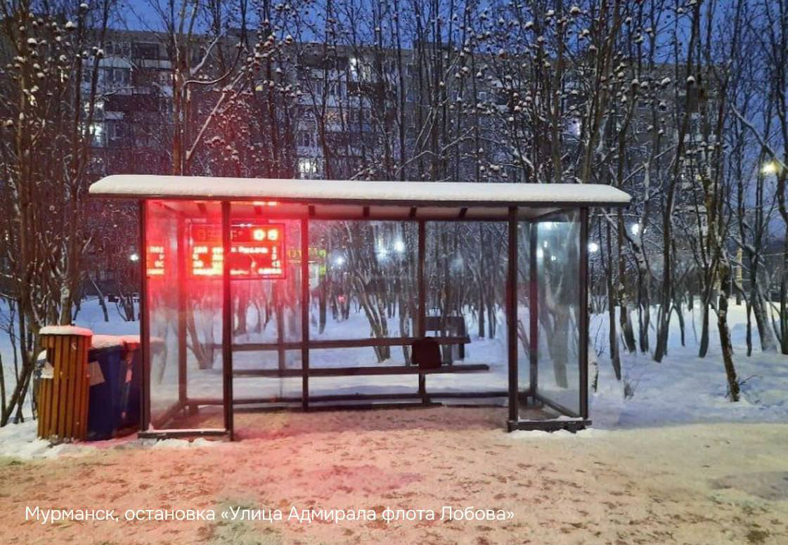 В Мурманске на улицах Лобова и 6-й Комсомольской батареи, а также в Печенге установлены новые современные остановочные комплексы.