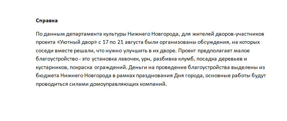 Как было отмечено исполняющим полномочия главы Нижнего Новгорода Юрием Шалабаевым, реализация проекта «Уютный двор» стала возможной благодаря инициативе самих жителей города.