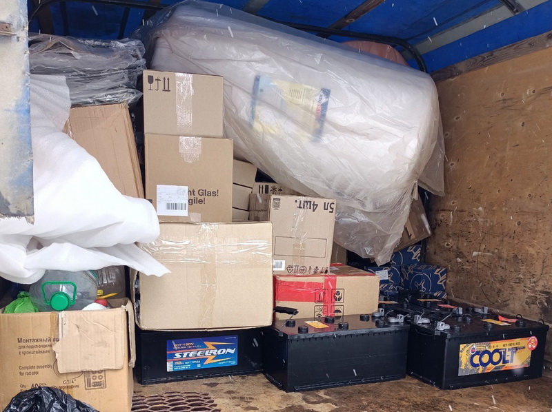 В состав гуманитарного груза на этот раз вошли аккумуляторы для КАМАЗов, резиновые сапоги, печи-буржуйки, тепловизоры, тактические очки, наушники и перчатки, маскировочные сети, блиндажные свечи, военная форма, термобелье, около 700 пар носков, продукты, медикаменты и средства личной гигиены.