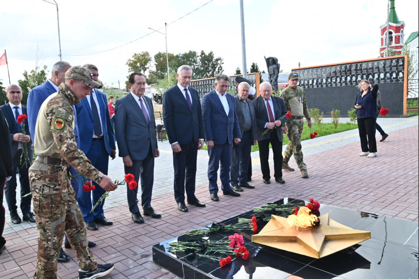В День воинской славы России — в День Победы над милитаристской Японией и окончания Второй мировой войны — Андрей Травников и Андрей Шимкив возложили цветы к мемориалу.