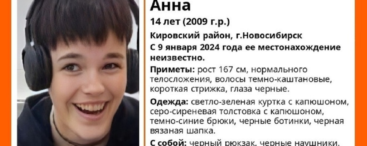 По данным волонтеров, девочка ушла из дома на территории Кировского района Новосибирска во вторник, 9 января, с тех пор о ее местонахождении ничего не известно. На связь с родственниками или полицией несовершеннолетняя не вышла.