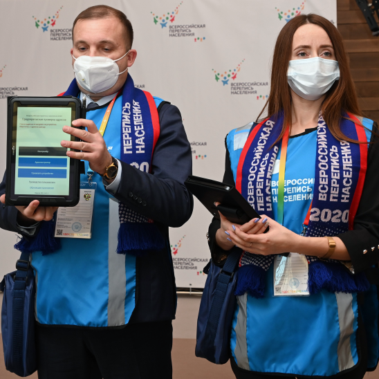 Переписчика можно узнать по специальным атрибутам. Это синий жилет и шарф с надписью: «Всероссийская перепись населения», брендированная сумка и специальный планшет для переписи населения. Обязательно переписчик должен быть в маске.