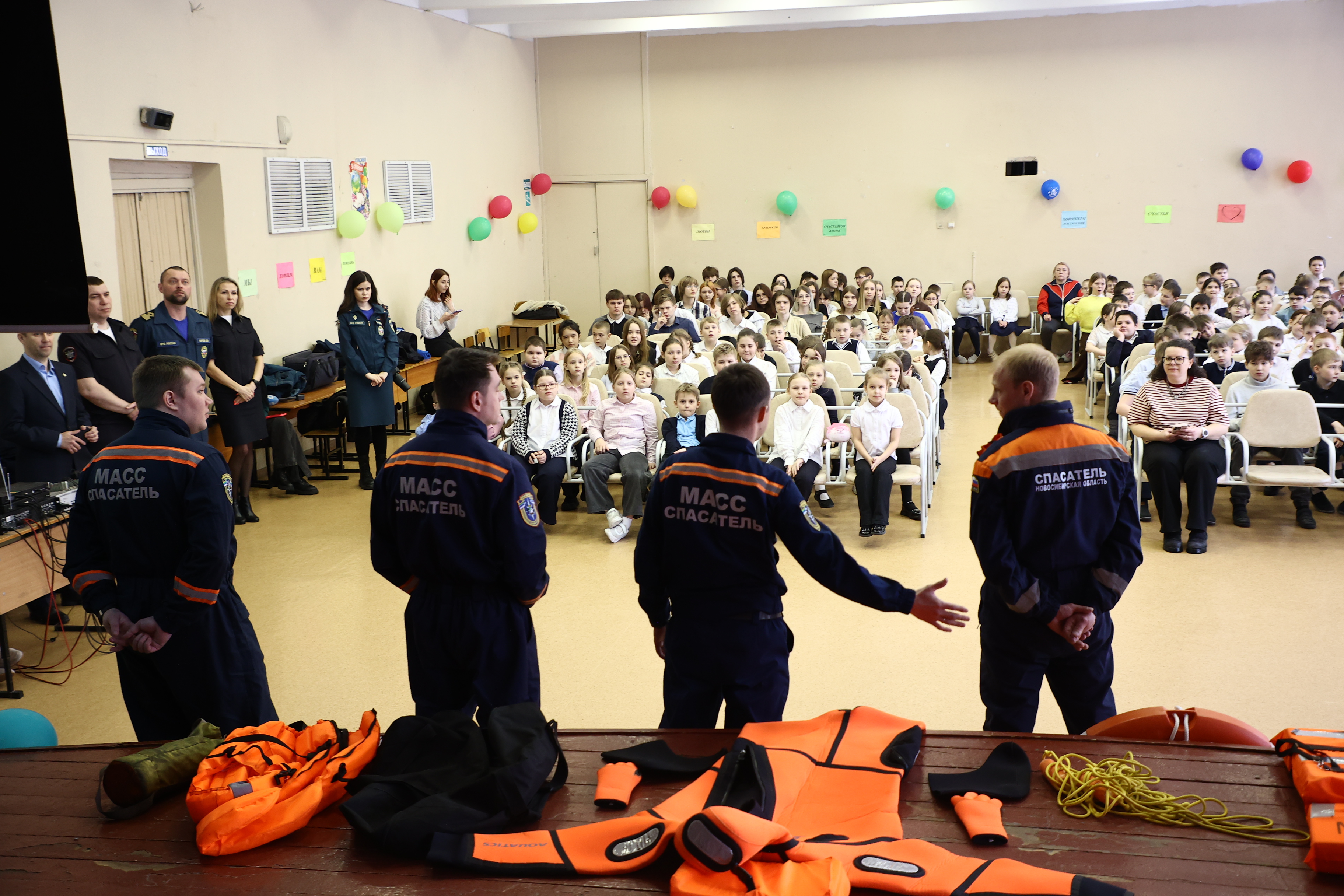 Сотрудники спасательных служб инсценировали критическую ситуацию прямо в актовом зале. Несмотря на отсутствие реального водоема, школьники смогли отработать навыки спасения и самоспасения. Спасатели показали, как правильно оказывать помощь человеку, провалившемуся под лед, и использовать подручные средства для спасения.