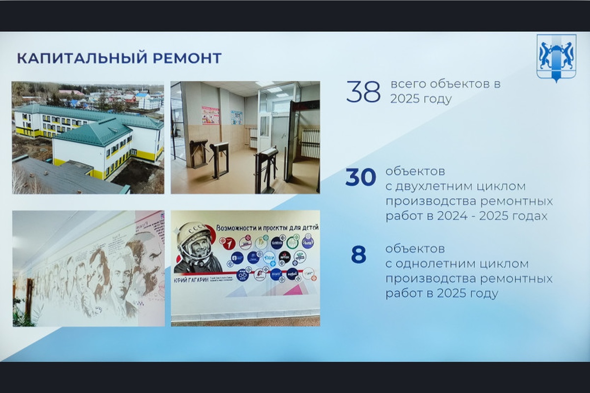В 2026-2027 гг. планируется капитально отремонтировать 35 зданий общеобразовательных учреждений. Также в регионе в рамках новых нацпроектов запущены два новых направления – капремонт зданий детских садов и общежитий колледжей. В настоящее время проводится капремонт детского сада в Куйбышеве, в 2026-2027 годах будут отремонтированы еще три детсада. Продолжаются ремонтные работы в Колледже промышленных технологий, а в 2026 году будет отремонтирован Новосибирский педколледж №1 имени Макаренко.