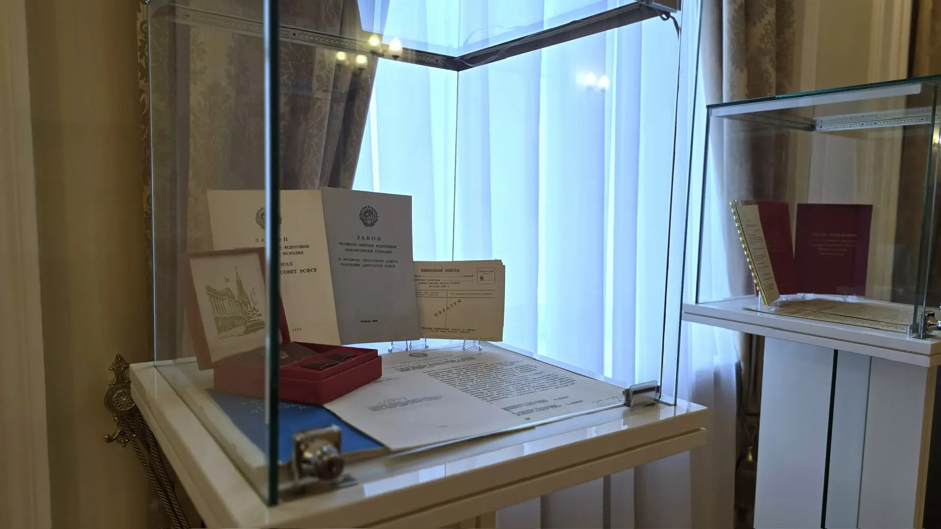 Экспозиция охватывает различные этапы развития парламентаризма — от дореволюционного периода и советского времени до современной России. На выставке представлены архивные фотографии, подлинные документы Омского областного Совета народных депутатов, книги, печатные материалы и другие исторические экспонаты.