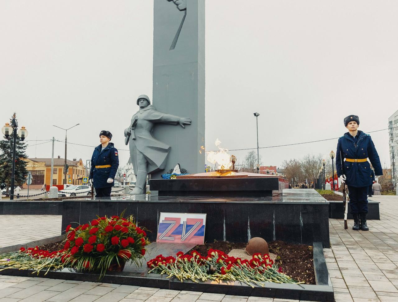 Участники мероприятия соблюли Минуту молчания и возложили цветы к монументу «Памяти павшим», а также к памятнику бойцам специальной военной операции.