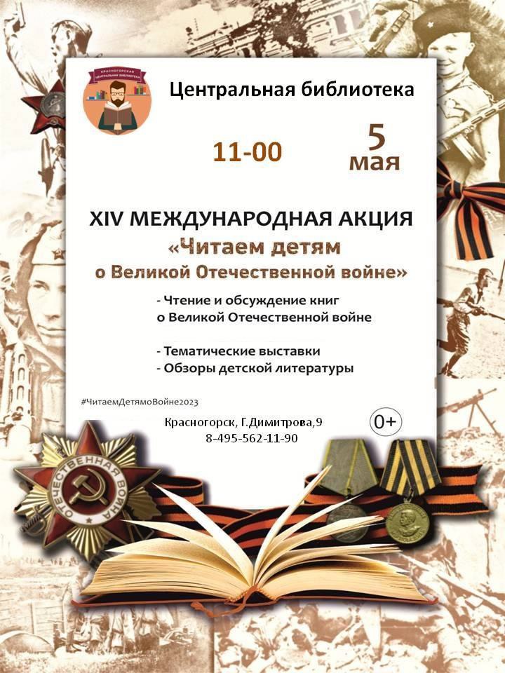 В Центральной библиотеке Красногорска 5 мая пройдет патриотический урок в рамках международной акции «Читаем детям о Великой Отечественной войне».
