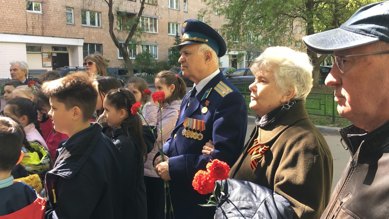 Вместе с учителями и учениками школы №12 жители возложили цветы к мемориальным доскам Героям Советского Союза Александру Миронову и Петру Колодяжному. Доски в их честь висят в военном городке Павшино.