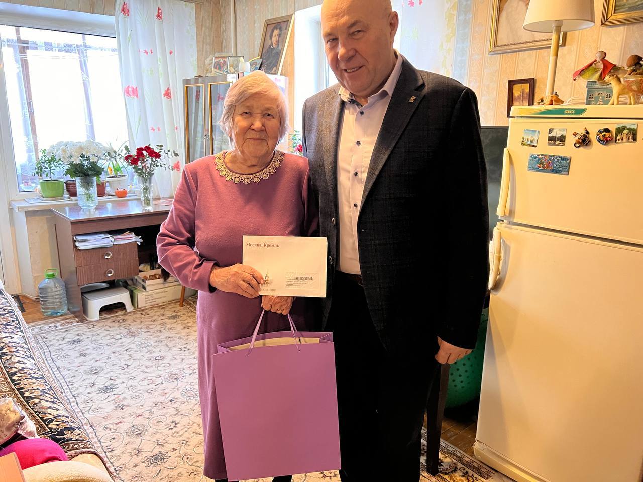 В Городском округе Пушкинский продолжается практика адресных поздравлений ветеранов, реализуемая по инициативе губернатора Московской области. В рамках этой работы местные депутаты лично навещают заслуженных жителей округа и передают им поздравления и памятные подарки.