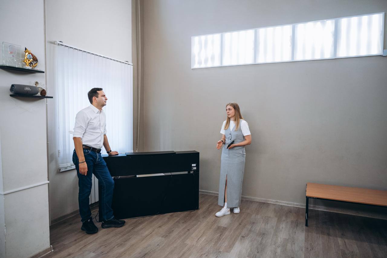 В здании отремонтировали крыльцо главного входа и оконные откосы, установили световую вывеску, заменили витражи, обновили хореографический зал и кабинет для вокала, а также установили систему видеонаблюдения и вызова персонала для людей с ОВЗ.