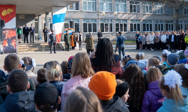 Торжественная линейка прошла в родной школе Льва Яшина. Школьники и учителя почтили память погибшего земляка и воина минутой молчания.