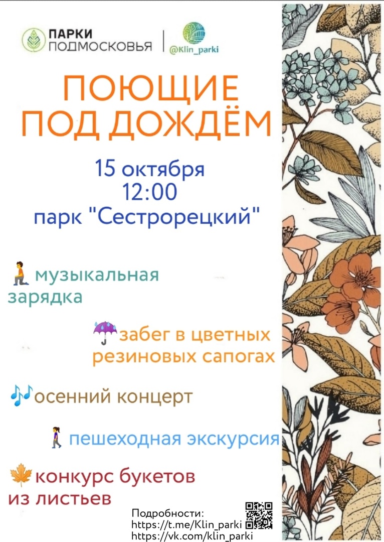 В Клину на территории Сестрорецкого парка в субботу, 15 октября, пройдет мероприятие под названием «Поющие под дождем».