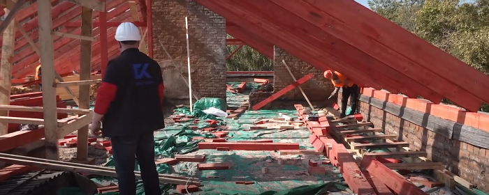 Пожар охватил как минимум тысячу квадратных метров площади здания. Специалисты разобрали сгоревшую кровлю и демонтировали центральное отопление. Более 50% новой стропильной системы уже собрано.