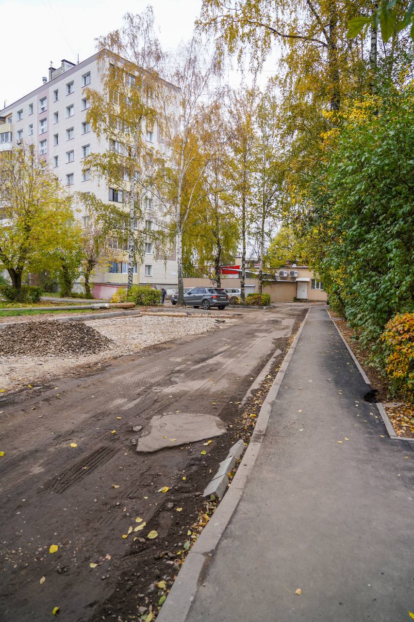 Вместо пустыря во дворе появились тротуары, увеличились парковки, обновилось дорожное и тропиночное покрытие, а также новое освещение, опилены аварийные деревья, устанавливаются лавки.