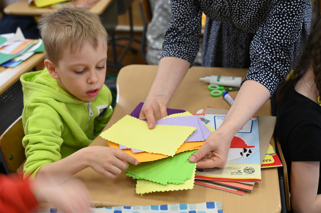 Для воспитанников муниципального центра духовной культуры из Красногорска провели пасхальный мастер-класс по созданию праздничной открытки с пасхальным куличом.