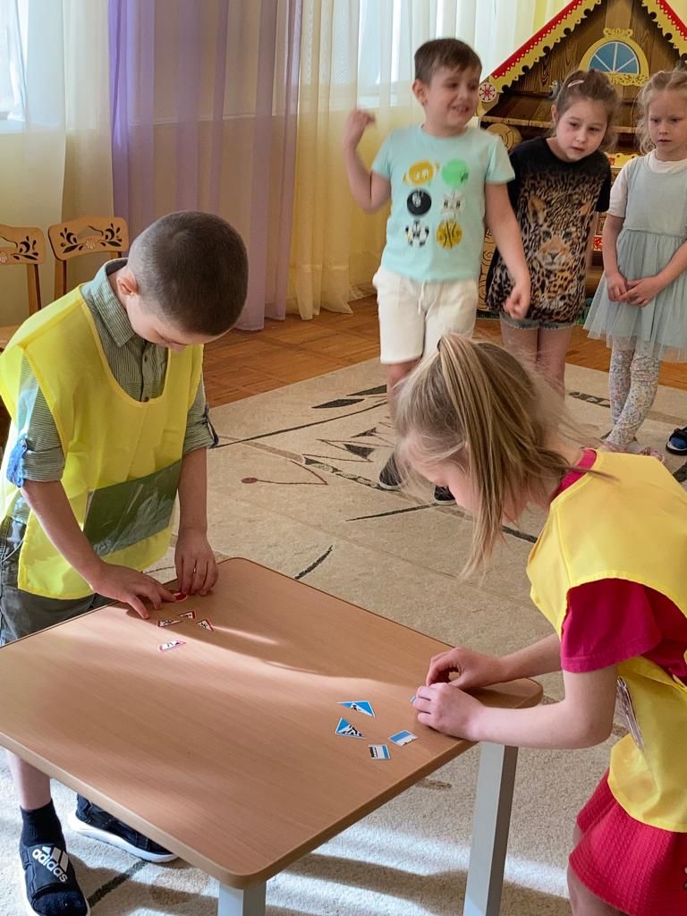Инспекторы рассказали детям о значении цветов светофора и о дорожных знаках, повторили правила перехода проезжей части. После этого прошла эстафета для закрепления знаний.