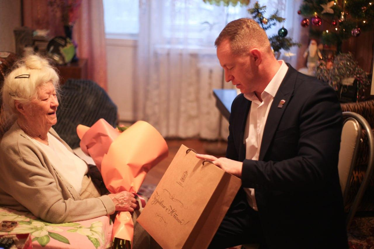 Артем Садула передал Маргарите Махоткиной подарки от лица губернатора Московской области Андрея Воробьева, отметив важность, чтобы люди старшего поколения, на чью долю выпали тяготы войны и годы восстановления страны, чувствовали заботу и внимание.