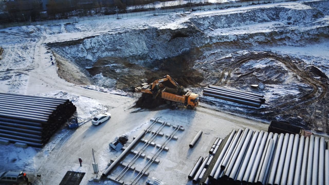 Строительство объекта началось в июне нынешнего года. Глубина котлована должна быть около 11, 5 метров. Данного показателя удалось достигнуть на 43% его площади.