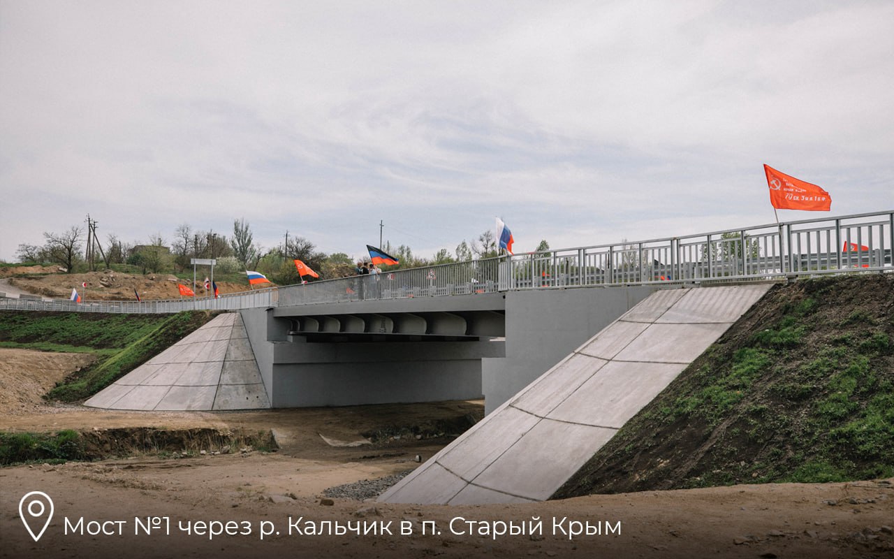 Кроме того, восстановлены пять мостов, в том числе через реку Грузский Еланчик и канал Кривокосского лимана. В Мариуполе после более чем двухлетнего перерыва открыты два моста через реку Кальчик.