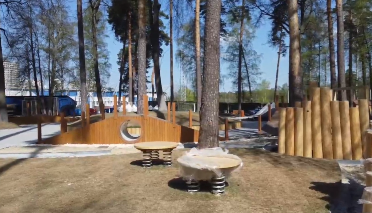 Также строители закончили работы по строительству детской велотрассы. Сделан веревочный городок, установлены столы для настольного тенниса, появились малые архитектурные формы для торговых объектов.
