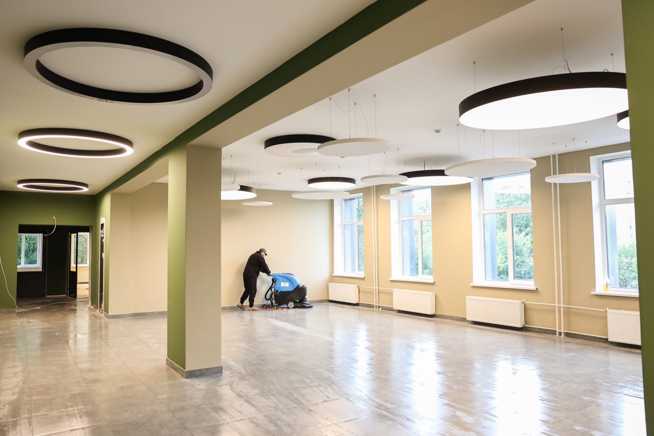 На стройплощадке работают 160 специалистов и задействованы семь единиц техники. Уже заменены инженерные коммуникации, обновлены системы отопления и вентиляции, выполнен ремонт фасада, а также обеспечена безбарьерная среда для учеников.