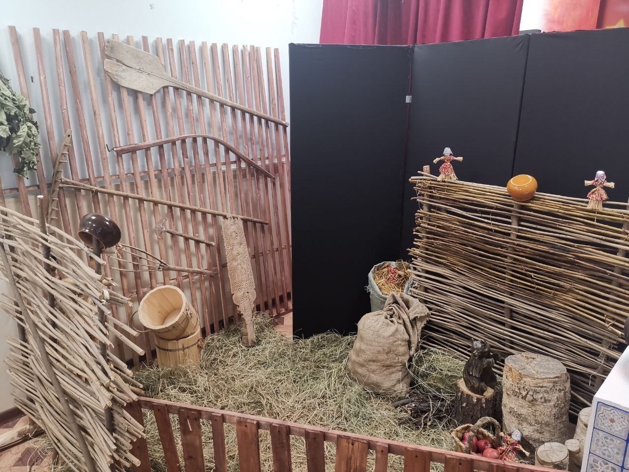 На выставке представили часть русской избы и сеней со старинными предметами быта и ремесел – эти углы служат фотозонами.