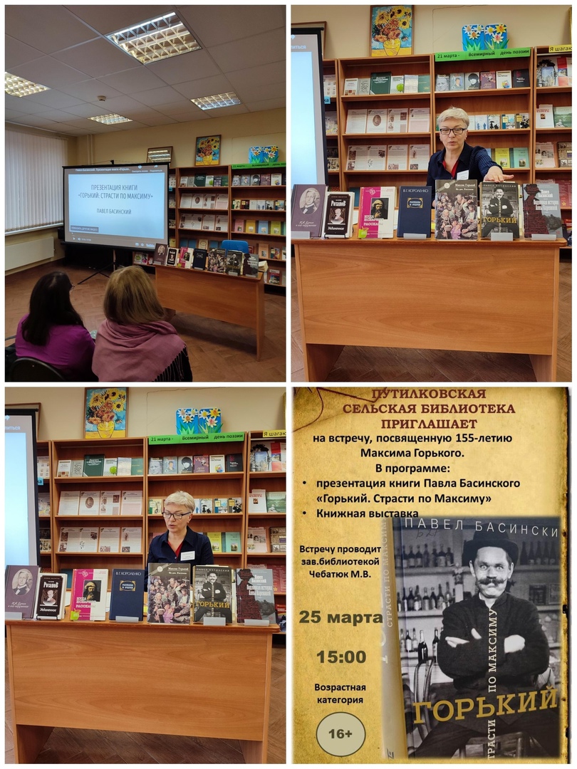 В Путилковской сельской библиотеке провели презентацию книги «Горький. Страсти по Максиму». Презентацию приурочили к 155-летию со дня рождения писателя. В библиотеке отмечают, что его личность – одна из самых сложных конца XIX века, а споры о его писательском величии и причинах смерти до сих пор ведутся.