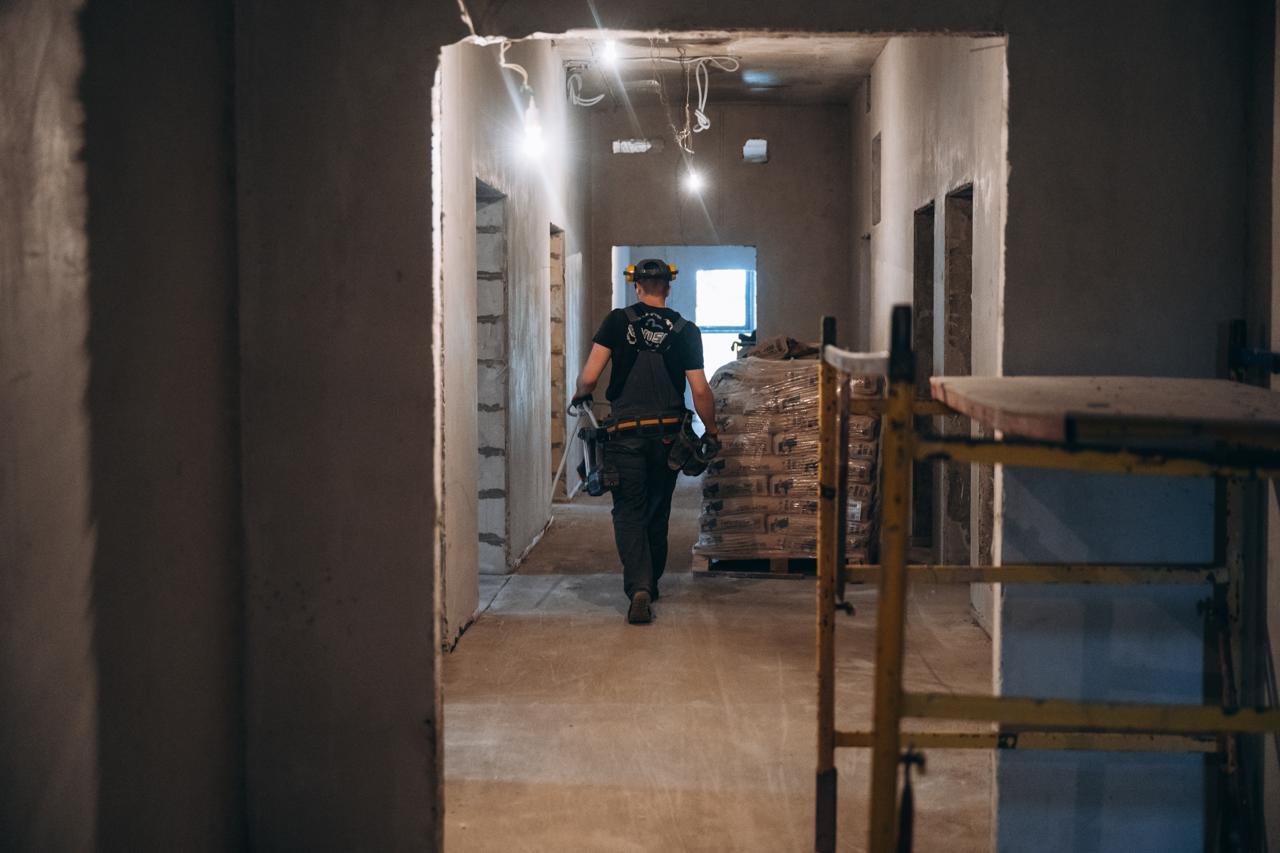 В Щелково-7 продолжается капитальный ремонт детского сада. Рабочие штукатурят, прокладывают системы отопления, водоснабжения и канализации, монтируют витражи и устраивают дренаж. Объект готов на 53%.