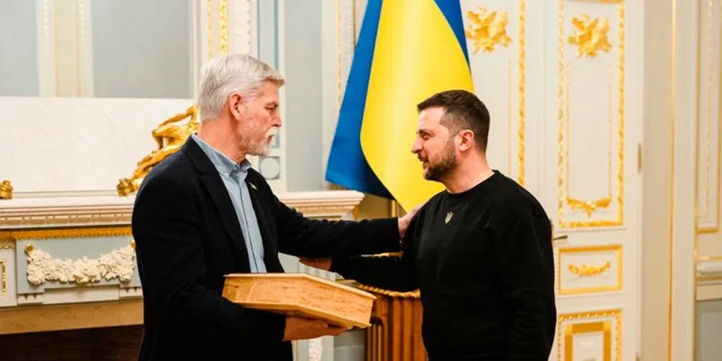 Президент Чехии Петр Павел наградил украинского президента Владимира Зеленского орденом Белого льва и подарил ему пистолет CZ 75. Он отметил, что сделал это в знак уважения к героизму Украины.