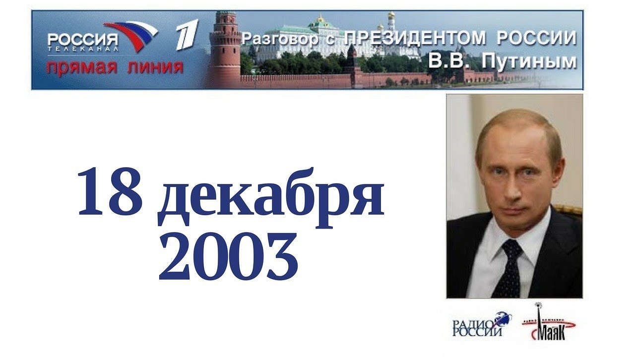 18 декабря 2003 года состоялась третья «Прямая линия с Путиным». В этот раз эфир продлился 2 часа 50 минут, было задано уже 69 вопросов, которые можно было задать на специальном сайте linia2003.ru. Граждане могли также обратиться на официальном сайте Кремля, ну и по телефону, как и прежде.