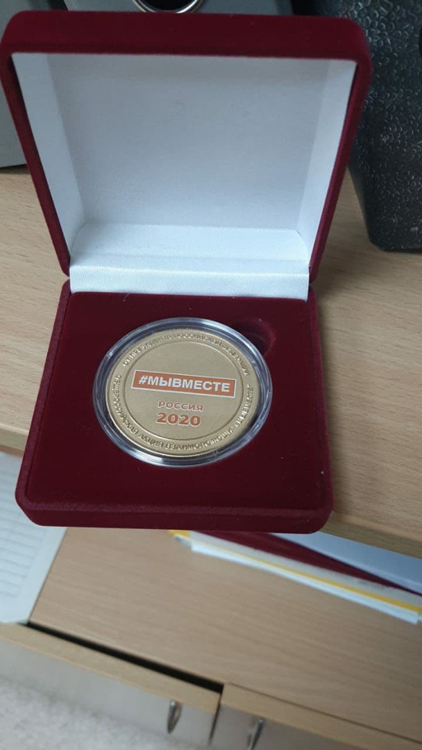 В группе Минздрава Рязанской области во «ВКонтакте» появилось сообщение о награждении участников акции взаимопомощи «Мы вместе». Так же называется и медаль президента России, которая и стала наградой.