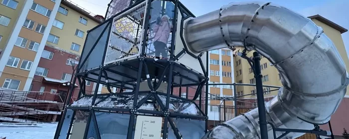 Центральным элементом площадки стал специальный комплекс с горками, канатами, логическими заданиями, календарем и ростомером.