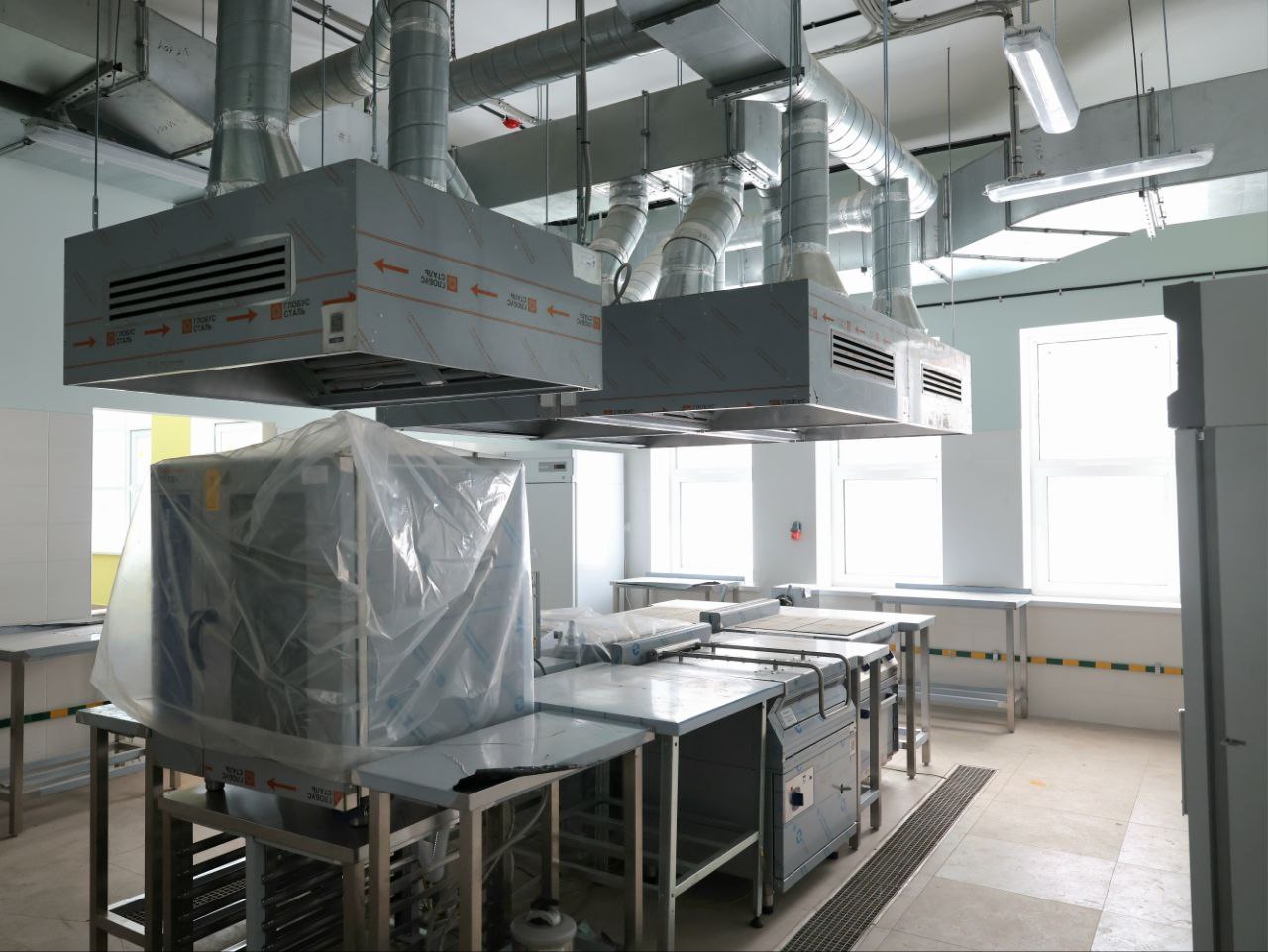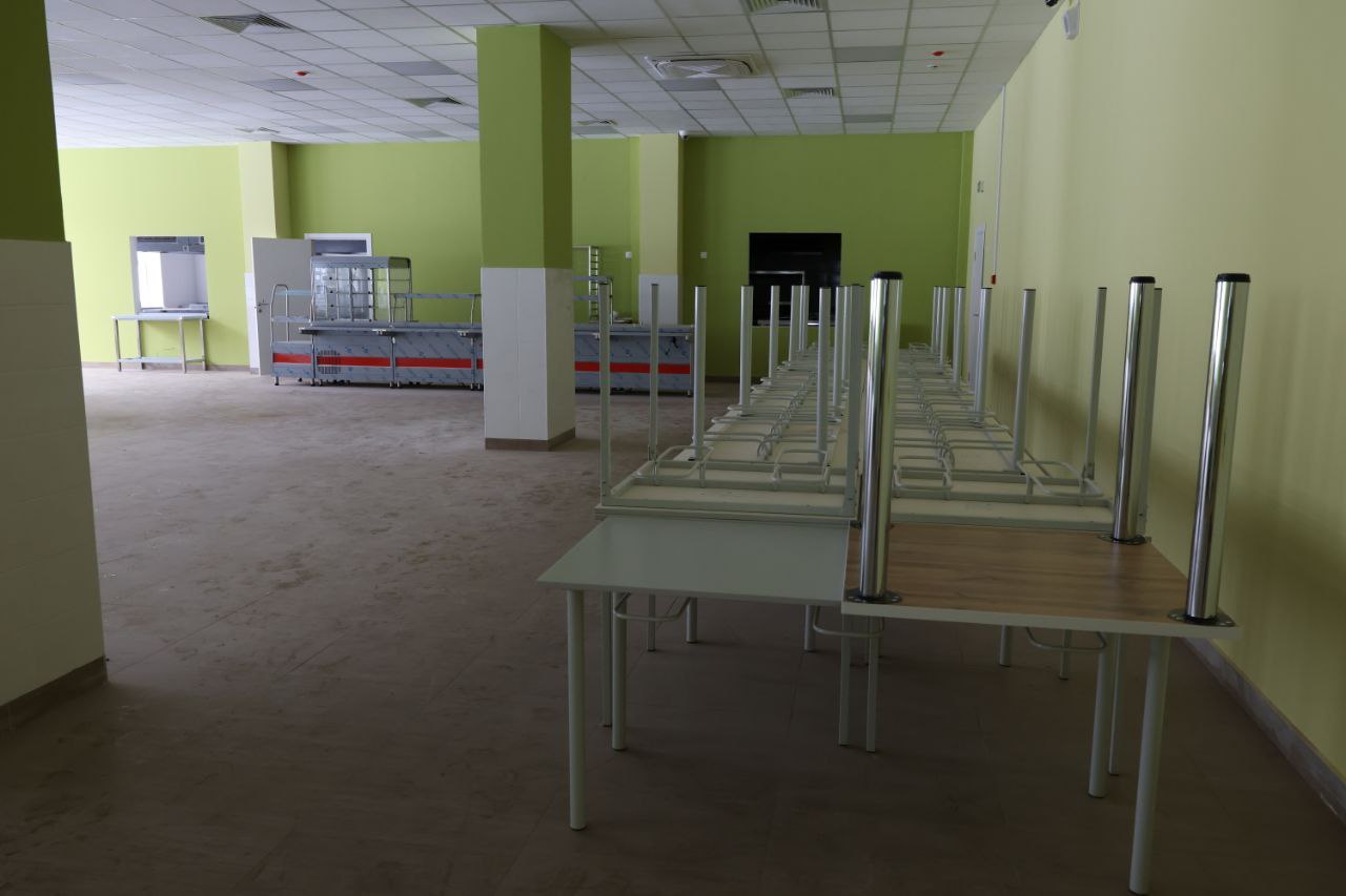 Как сообщили представители строительной компании Ивану Носкову, основные работы по реконструкции объекта уже завершены. В помещениях пищеблока уложены полы из керамогранита, стены облицованы керамической плиткой, установлены окна, витражи и двери. Фасад здания утеплен минеральной плитой, выполнено устройство наружной канализации. В настоящее время продолжается монтаж кухонного оборудования – пароконвектомата, варочных плит, духовых шкафов, посудомоечных машин и холодильных установок, а также мебели для обеденного зала.