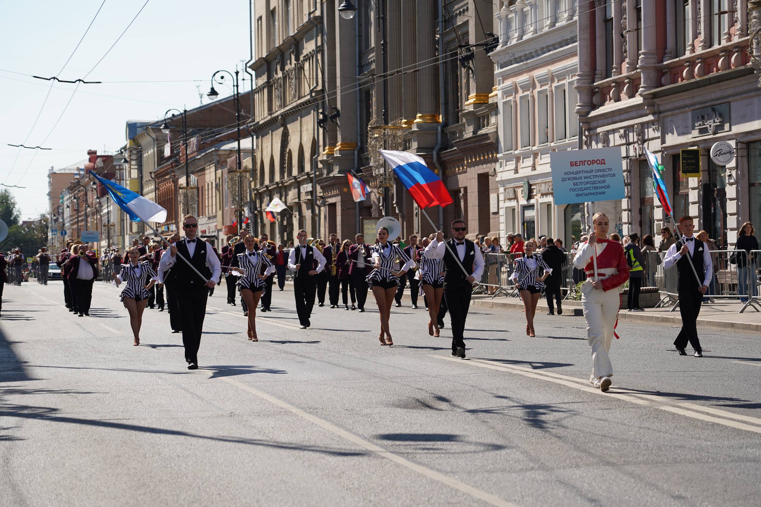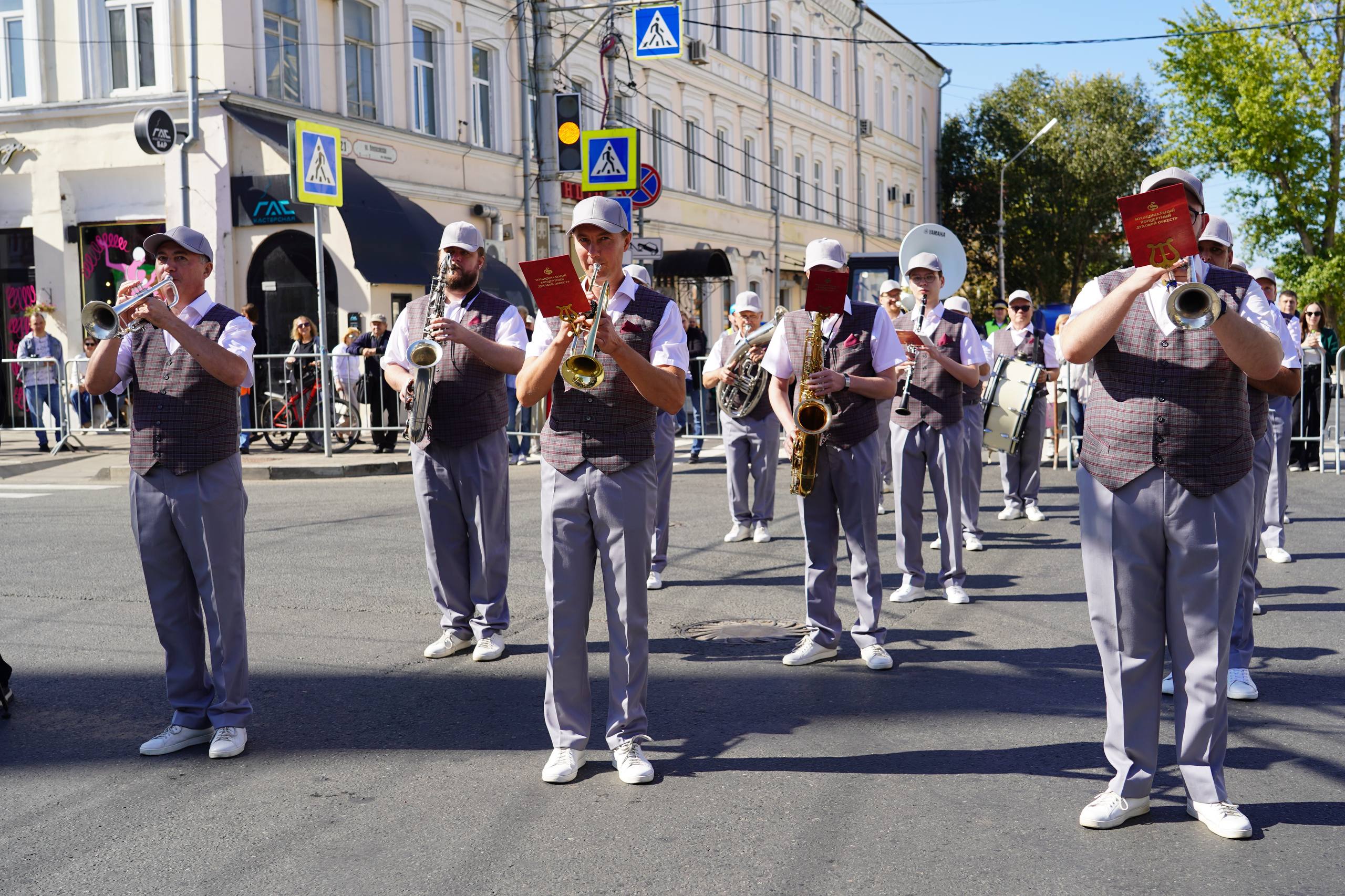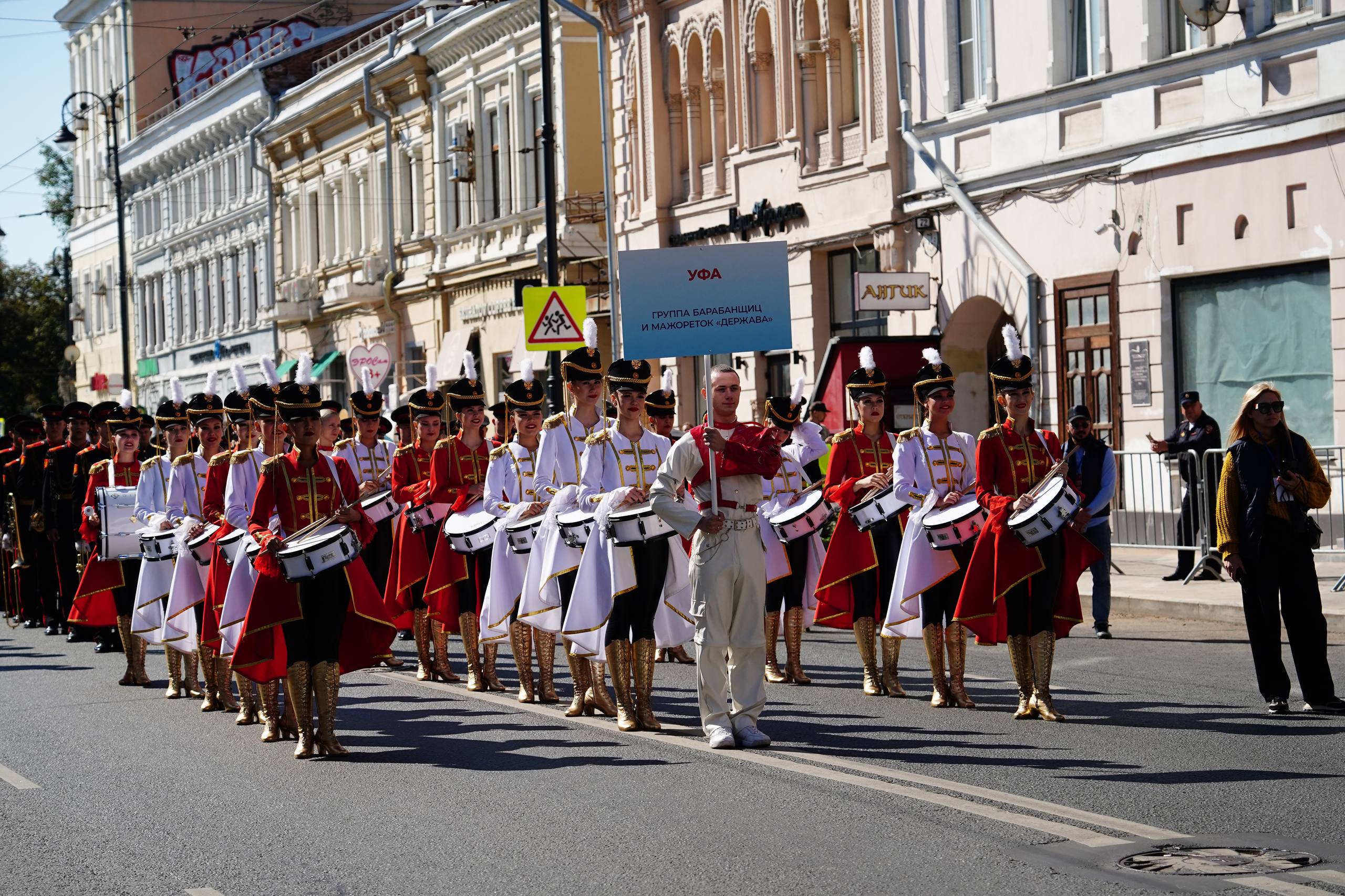 Парад стартовал с улицы Венцека и прошел около километра до улицы Красноармейской. Музыканты играли, показывали строевые упражнения и хореографические элементы.