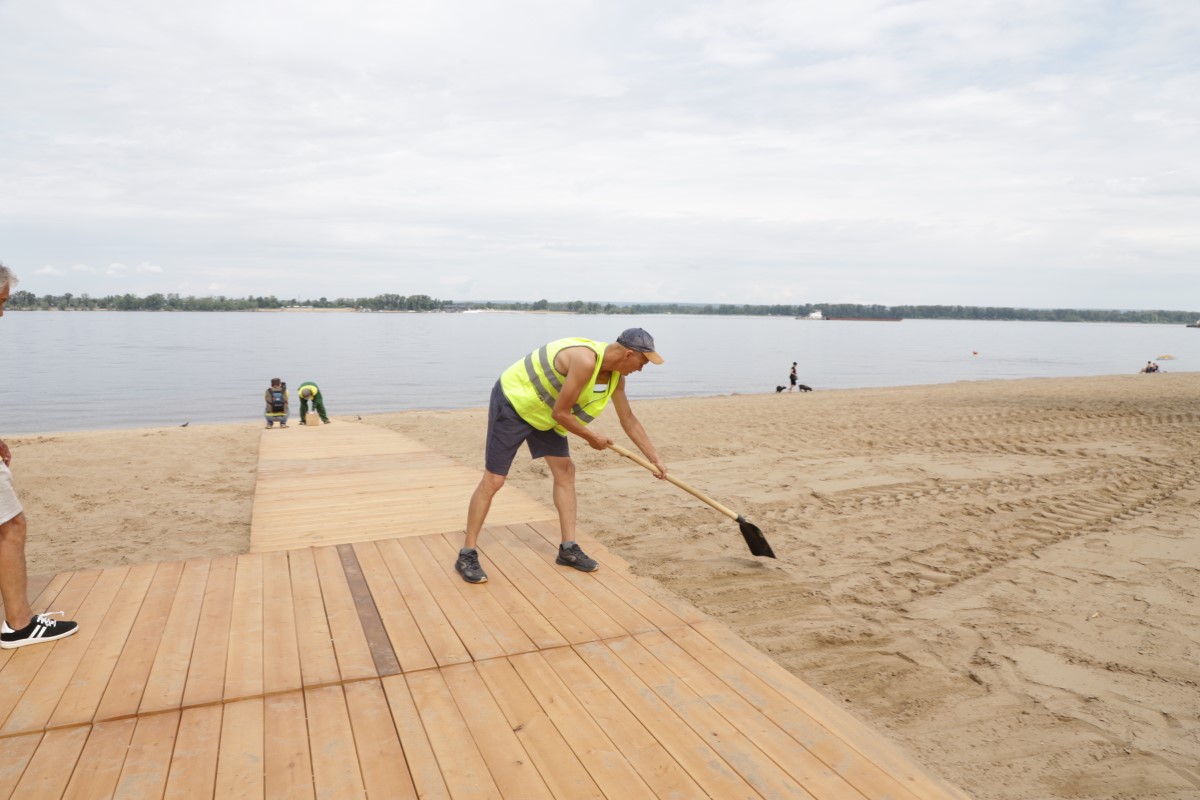 Рабочие МАУ «Самарская набережная» в сезон также занимаются содержанием пляжей. Два раза в день убирают мусор с территории, основные работы проводятся рано утром.